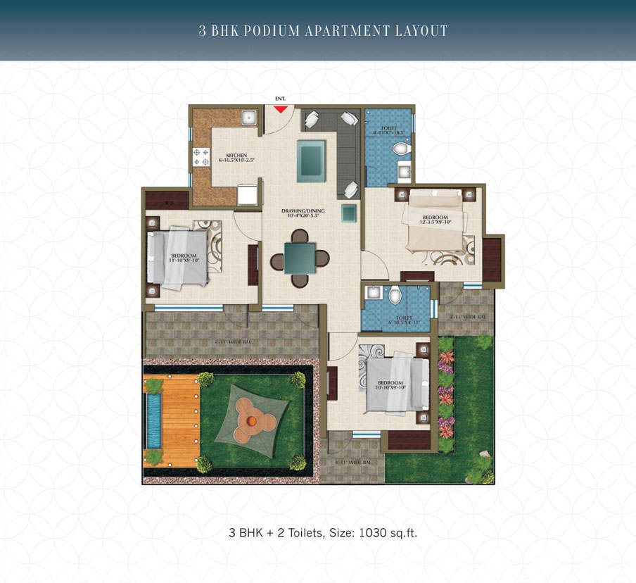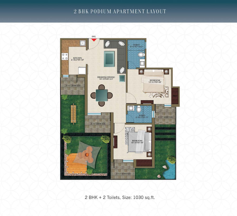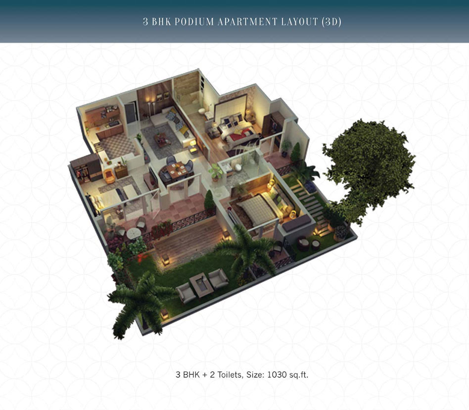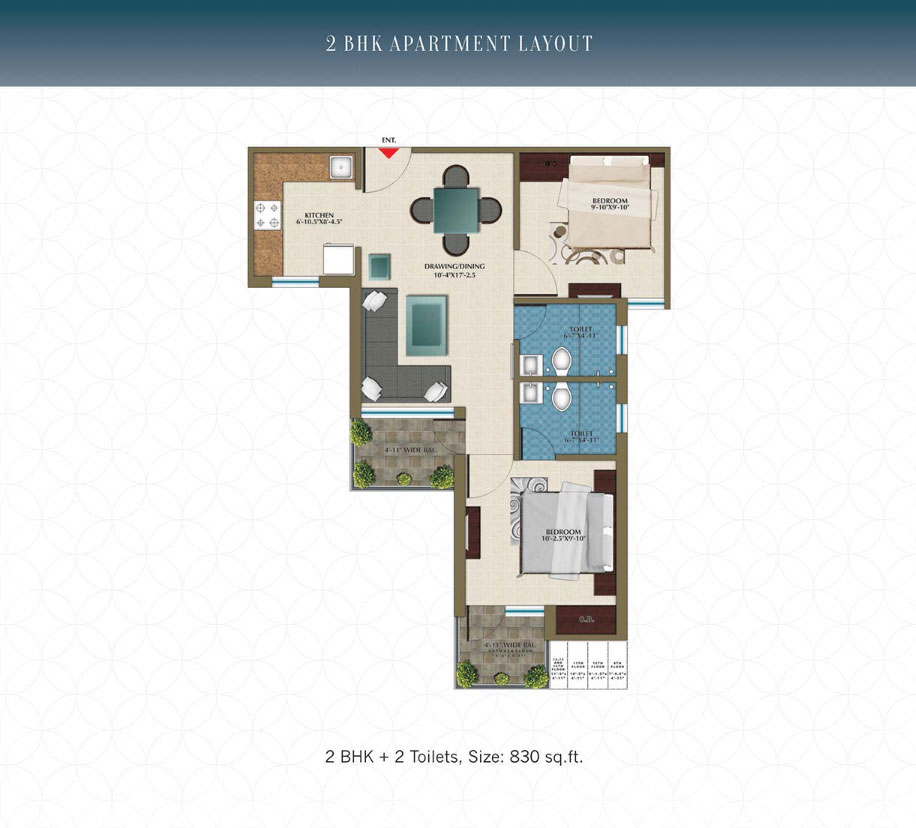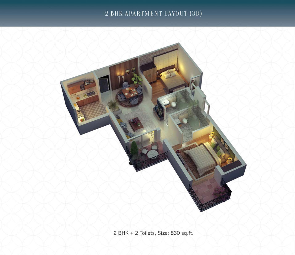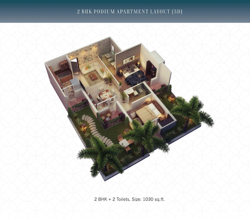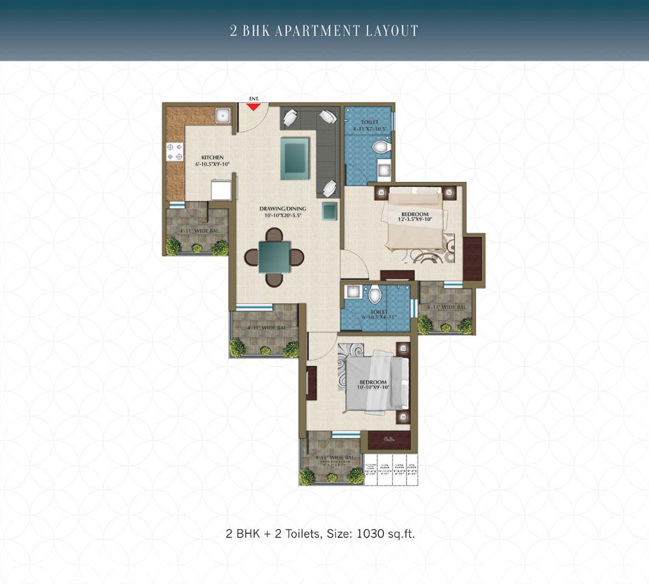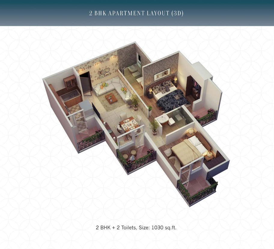 | 2 BHK | 1030 Sq. ft. | 628 Sq. ft. | 119 Sq. ft. | 130 Sq. ft. |