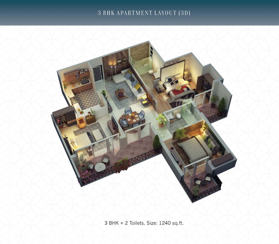 | 3 BHK | 1240 Sq. ft. | 754 Sq. ft. | 120 Sq. ft. | 158 Sq. ft. |